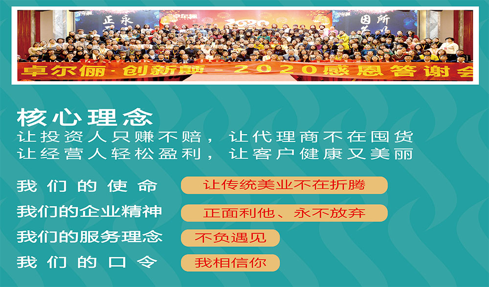 卓爾儷創(chuàng)于2006年,迄今己屹立業(yè)界13年,卓爾儷長期以來秉持“愛與美”的文化,以“奉獻(xiàn)美麗與健康”為經(jīng)營宗旨,以“品質(zhì)為本,創(chuàng)新為魂”為經(jīng)營理念,將連鎖體系中所有成員定位于戰(zhàn)略伙伴式的合作關(guān)系,倡導(dǎo)企業(yè)、加盟店、消費(fèi)者“三贏”的陽光工程。為此,設(shè)立了專門的售后服務(wù)中心,將在產(chǎn)品、形象、研發(fā)、營銷、管理等各個環(huán)節(jié)全面提升品牌競爭力。